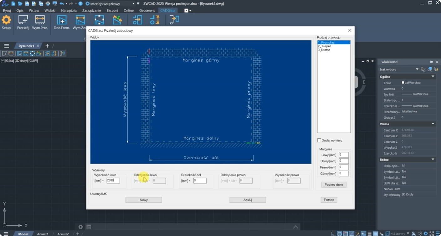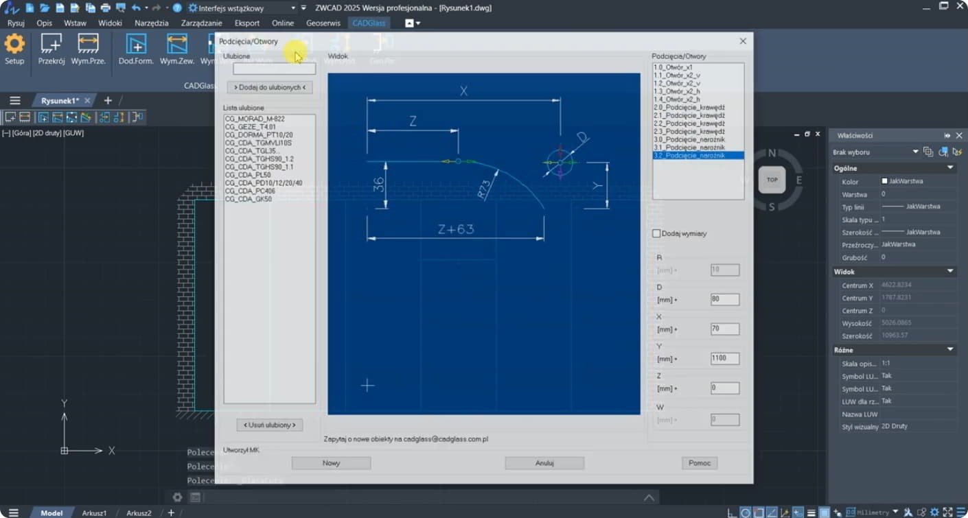 Funkcje programu CADGlass: