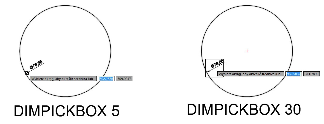 Podczas korzystania z polecenia WYMIAR, użytkownik może w prosty sposób wstawiać opisy wymiarowe do obiektów. Program automatycznie rozpoznaje rodzaj wymiaru w oparciu o obiekt i pozycje kursora. Najnowsza aktualizacja wprowadziła zmienną, która umożliwia sterowanie dokładnością kursora podczas wymiarowania.